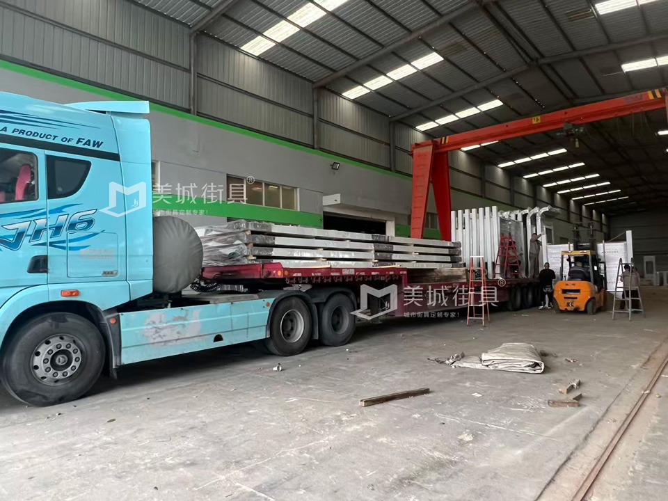 項(xiàng)目介紹:江蘇美城街具為新疆定制候車亭站臺(tái)發(fā)貨案例