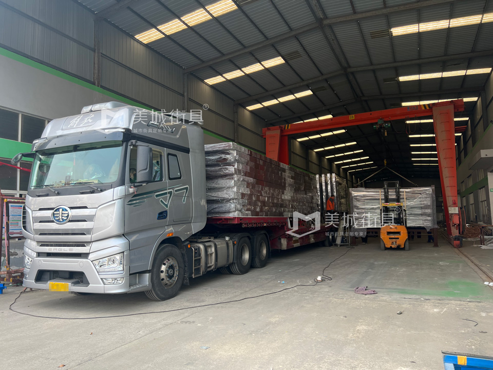 江蘇美城街具供應新疆第七批候車亭公交站臺發(fā)貨案例