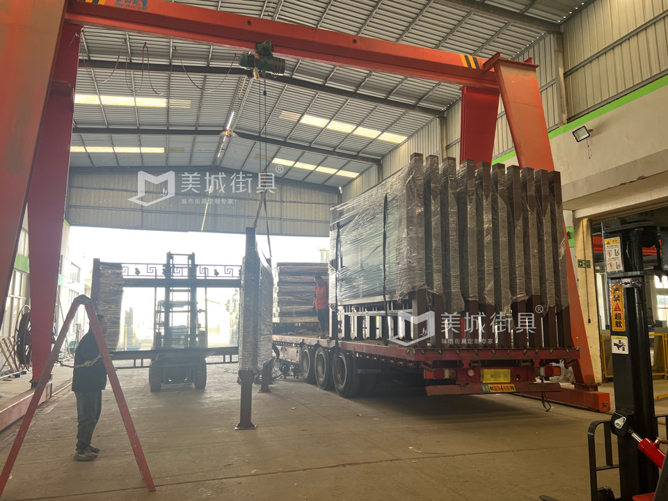 江蘇美城街具為新疆定制第六批候車亭公交站臺發(fā)貨案例